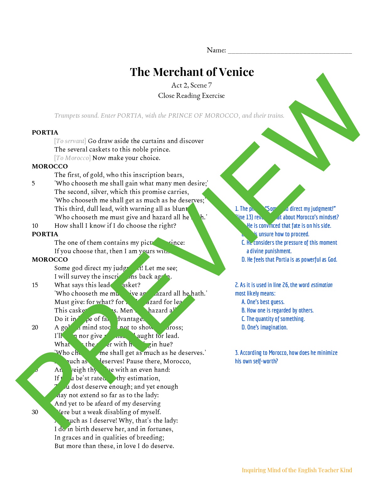 Which Conclusion Does This Excerpt Best Support Portia